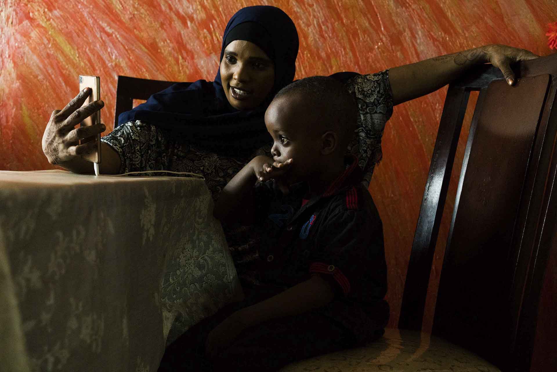 How can Amina explain presidential policy to a 4-year-old? It’s simple: She doesn’t. She repeats the only thing Mohamed wants to hear, and what she wants to believe to still be true, and possible. The conversation returns to the familiar contents of every call: a series of soothing refrains and promises. Amino, I love you, amino, how are you? Amino, I will come for you.
